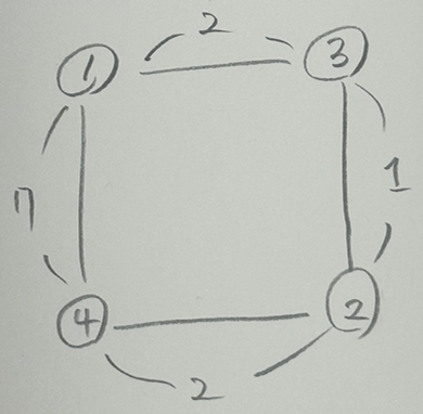 단순히 본다면 1 -> 4 가 거리가 7이나 된다. 따라서 합리적인 이동경로가 불가능하다고 판단할 수 있다.