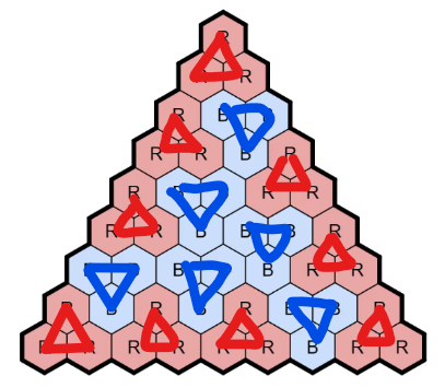 따라서 완전탐색을 통해서 빨간색 삼각형과 파란색 삼각형을 찾아서 해당 위치를 방문처리하며 탐색했다.