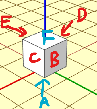 - 주사위의 전개도의 각 면에는 수가 쓰여져 있다.(A,B,C,D,E,F)